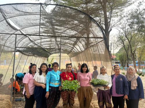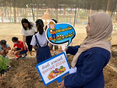 สพอ.พัฒนานิคมร่วมกับผู้นำ อช.และองค์กรสตรีสนับสนุนต้นกล้าพืชผักสวนครัวให้แก่นักเรียนโรงเรียนอนุบาลพัฒนานิคม